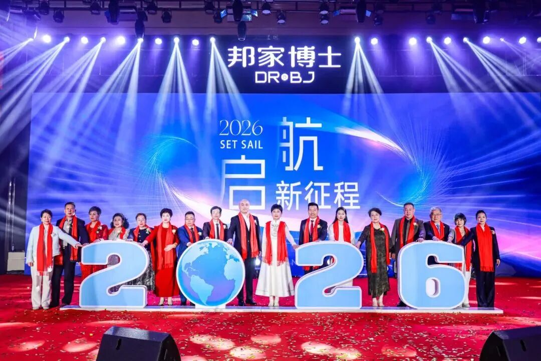 在盛会的最高潮,戴嵘总裁携市场副总裁等公司高层、市场董事及香港市场代表游伟良、汤玉琴、季小叶和迪拜市场代表范香爱等十余位嘉宾共同启动了2026年新征程。当全场齐声高喊“2026,启航新征程”时,一个更具雄心的绿色未来蓝图已然展开。全球伙伴的积极参与,更是彰显了邦家博士“立足中国、辐射全球”的发展格局。