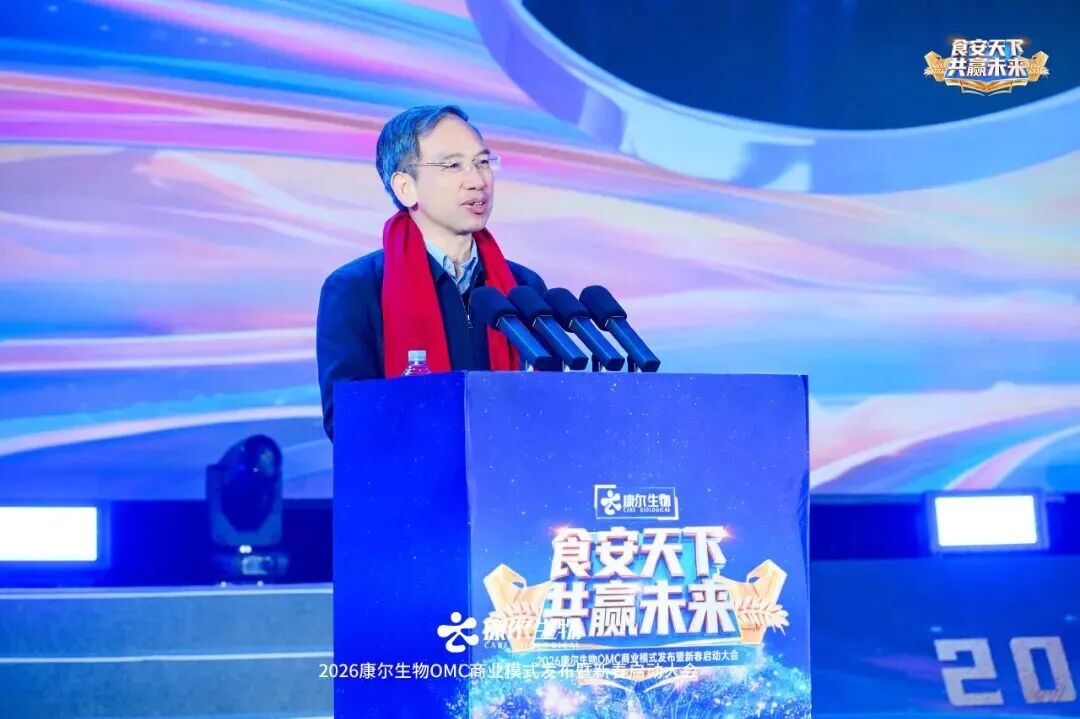 康尔生物董事长助理、业务运营中心总监孔峰先生,深度解读了市场利好政策。他围绕OMC商业模式创新、北极公社项目落地、品牌合规升级及精准教育赋能等核心板块,系统阐述了企业为市场拓展构筑的坚实保障体系。这一系列战略部署,不仅彰显了康尔生物“以商为本、以教赋能”的运营智慧,更为伙伴们2026年市场攻坚提供了精准导航与强力支撑。