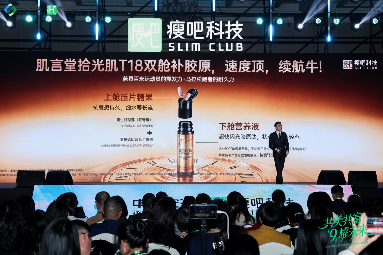 3月7日,备受瞩目的Skintalk肌言堂拾光肌T18双舱饮在瘦吧科技9周年暨新品发布会上正式亮相。作为一款革新性的口服抗衰产品,T18双舱饮凭借“系统性抗衰新范式”理念、双舱协同设计及全球甄选18种珍稀原料,重新定义了口服抗衰,引发全场高度关注和热卖。