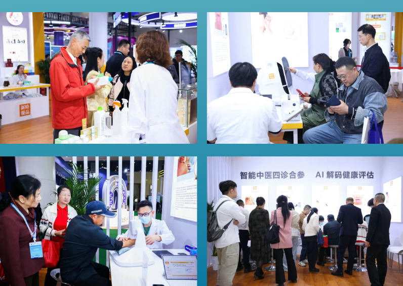 开展首日,新时优品展区人潮如织,成为展馆的焦点。四诊合参智能设备体验区排起长队,参观者争相体验科技与传统中医相结合的智能化健康监测服务;产品展示区,工作人员耐心讲解各个健康解决方案,并提供新品试吃试饮,吸引众多参观者、创业考察人驻足咨询。