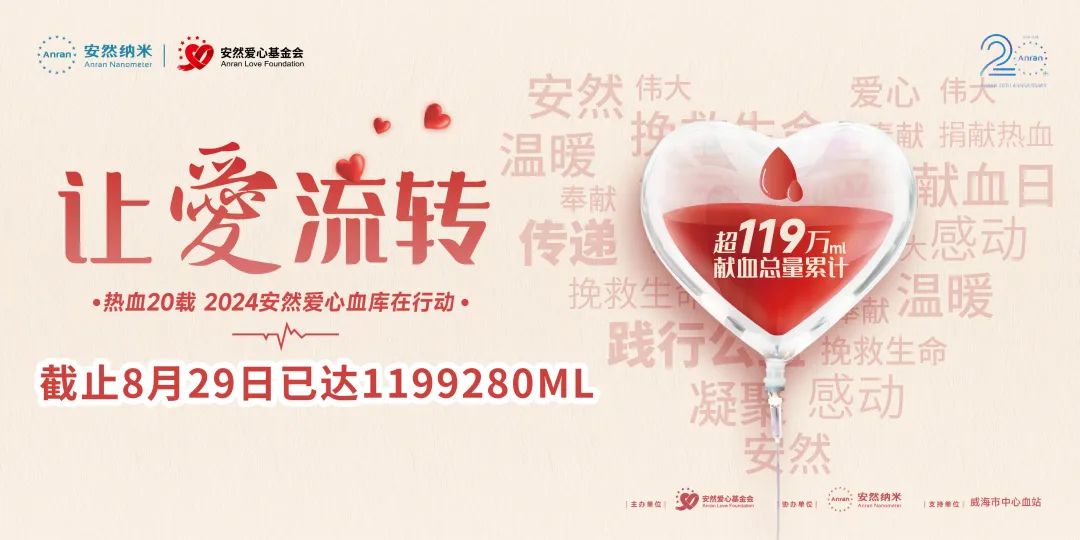 他们用实际行动诠释了安然“愛·感恩”的核心文化,让爱如春风般温暖人心。我们坚信,通过持续不断的努力与奉献,能够挽救更多生命,让爱继续流转。在6年的爱心血库行动中,我们不仅是为生命加油,更是在传递着爱与希望的力量。今年,全国17座城市加入我们的爱心血库行动,汇聚了1500余名热心公益的伙伴们,共同贡献了新增近200000ml的宝贵血液,这些数字背后,新增了400个家庭的笑容,是爱与希望之光的璀璨绽放。安然人不仅以实际行动诠释了社会责任与担当,更在每一次挽袖之间,搭建起了一座座连接生命的桥梁,让爱与希望的力量跨越千山万水,温暖每一个需要的角落。展望未来,安然集团将继续秉承“愛·感恩”的企业文化,将无偿献血事业作为社会公益事业奋斗终生。让我们携手并肩,为地球增添更多红色,共同创造一个充满爱与希望的美好未来!