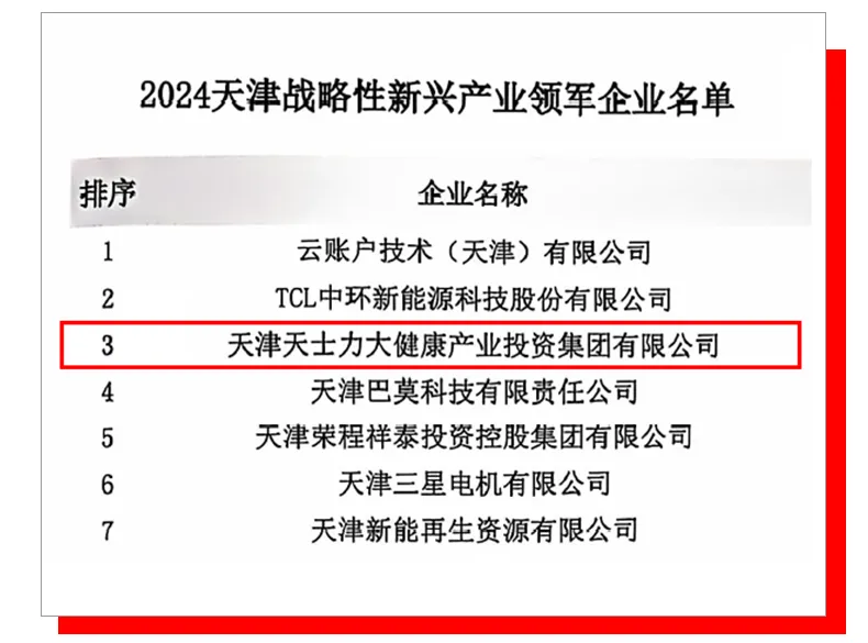 ▲2024天津战略性新兴产业领军企业,天士力位列第3位