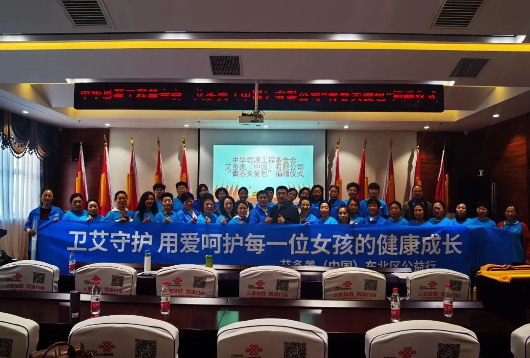 2024年10月10日,艾多美爱心志愿者来到校园。艾多美“卫艾守护”项目于吉林省白山市政务大厅会议室举办了捐赠仪式,东北区外事部经理黄山出席了捐赠仪式仪式,为全校女同学捐赠了青春关爱包。