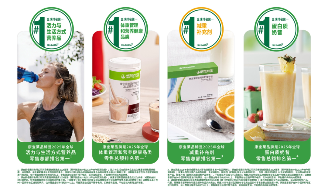 「重点播报」01康宝莱2025年蝉联多项品类全球排名第一根据全球知名调研机构欧睿国际(Euromonitor)最新发布的2025年度数据显示,康宝莱品牌凭借卓越