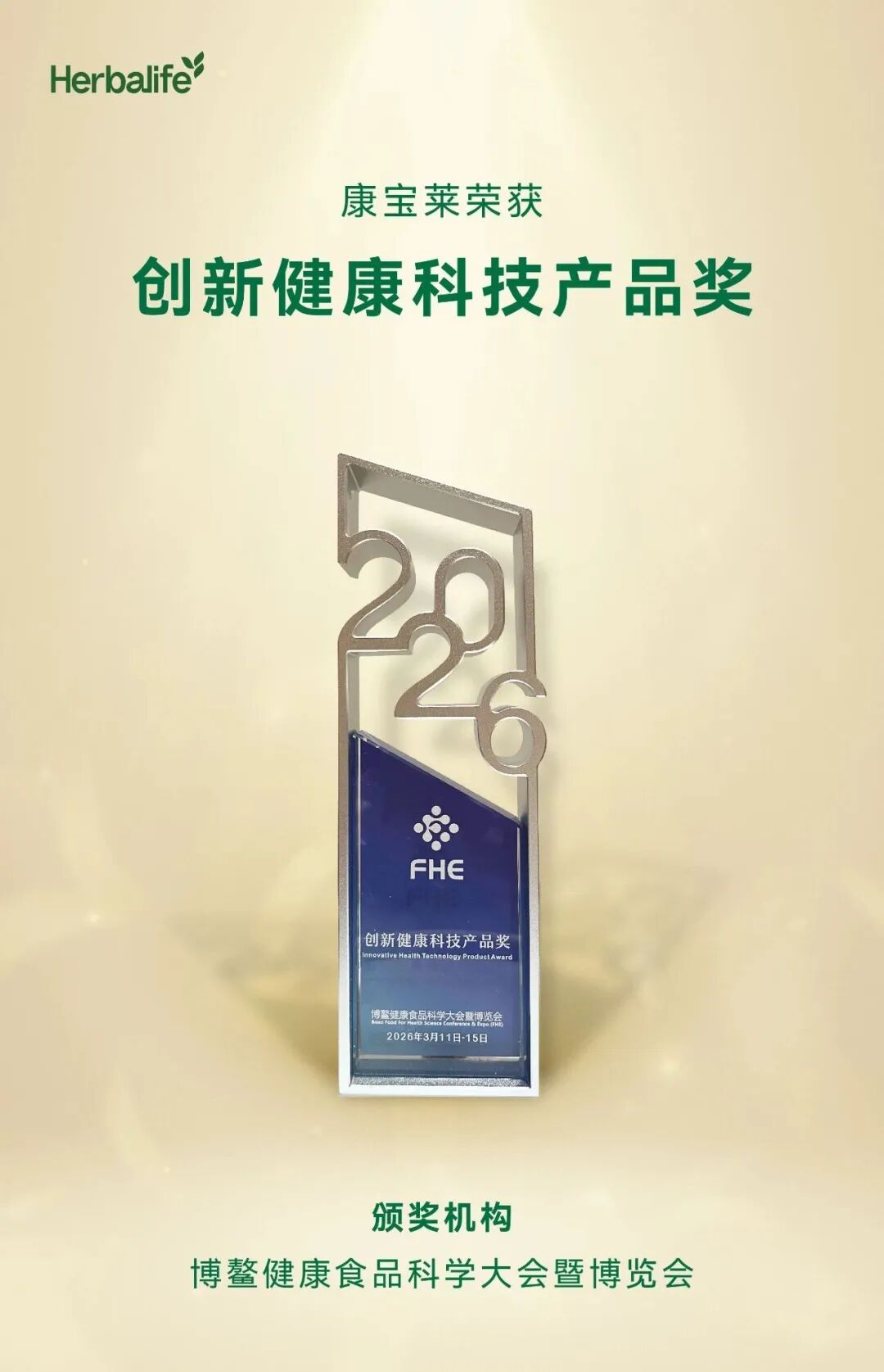 凭借科学体重管理领域的创新实践与卓越产品品质,在近日举行的博鳌健康食品科学大会暨博览会(FHE2026)上,康宝莱获得大会颁发的“FHE 2026创新健康科技产