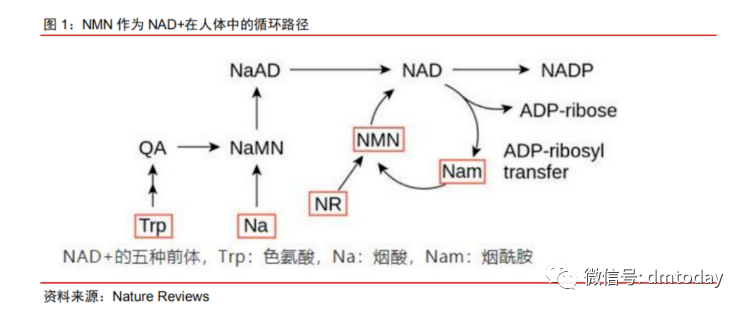 NMN学名为“β-烟酰胺单核苷酸”,据公开资料显示,它是NAD+(辅酶I)的前体物质,后者与人体内能量代谢、糖酵解、DNA复制等活动都息息相关。因此,可以提高人体内NAD+水平的NMN,被认为是一种具有抗衰老功能的产品。
