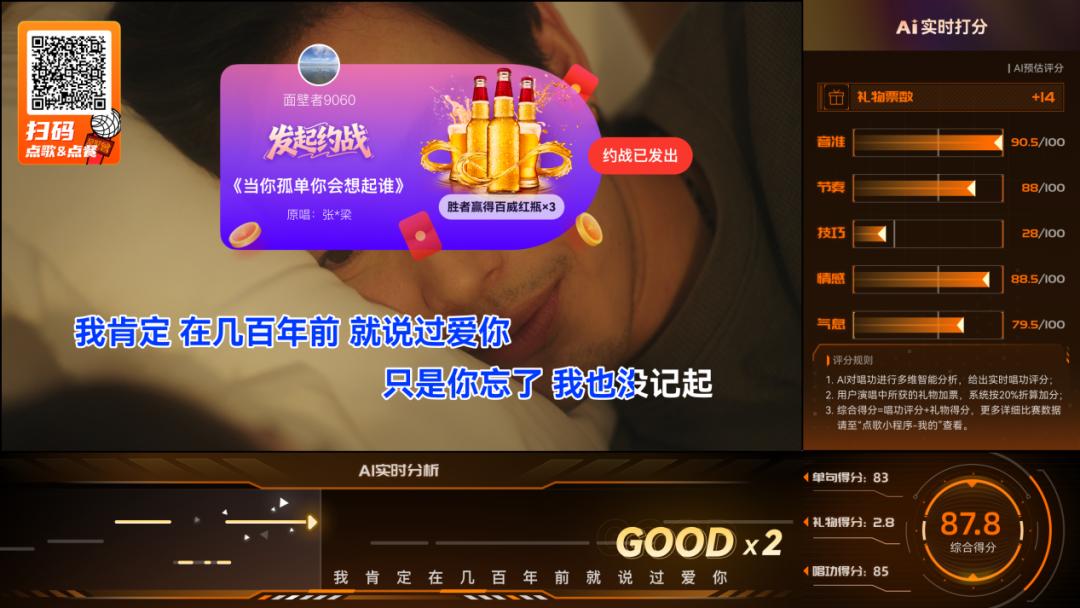 经过近3年时间、投入近亿元研发费用后,星聚会研发团队实现了关键性突破——利用AI算力,从音准、节奏、技巧、气息、情感五个维度进行打分,星哥充满自信,“AI 评分精准度对标专业音乐评审,摒弃人为主观偏好,只聚焦声音本身,给出无可挑剔的客观评分!因为AI只听声音,没有主观偏好。”其实,KTV评分过去就长期存在,对此星哥并不否认,甚至直指核心,“以前的评分更多是图个乐,不够精准,所以大家都不太当真。”他深知,如果要搞比赛、要PK,公平就是一切。“评分,是我们所有新玩法的地基。感谢AI技术的发展,让这成为了可能。”